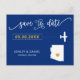 Vous avez choisi un endroit spécial pour votre mariage. Maintenant, il est temps de le célébrer avec ce gardien, enregistrez la carte postale de date, avec une carte de silhouette et un minuscule avion vers votre destination. Pour déplacer le coeur à la place de votre mariage, cliquez sur personnaliser, puis "customiser plus loin".