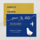 Vous avez choisi un endroit spécial pour votre mariage. Maintenant, il est temps de le célébrer avec ce gardien, enregistrez la carte postale de date, avec une carte de silhouette et un minuscule avion vers votre destination. Pour déplacer le coeur à la place de votre mariage, cliquez sur personnaliser, puis "customiser plus loin".