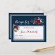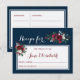 Mariée chic et classe pour être la carte postale recette avec bouquets de fleurs bordeaux et blancs de pivoine avec branches saisonnières de sapin, baies rouges et feuillage sur minuit arrière - plan bleu marine. Idéal pour votre douche nuptiale à thème fleuri hiver / Noël.