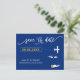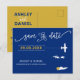 Vous avez choisi un endroit spécial pour votre mariage. Maintenant, il est temps de le célébrer avec ce gardien, enregistrez la carte postale de date, avec une carte de silhouette et un minuscule avion vers votre destination. Pour déplacer le coeur à la place de votre mariage, cliquez sur personnaliser, puis "customiser plus loin".