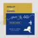 Vous avez choisi un endroit spécial pour votre mariage. Maintenant, il est temps de le célébrer avec ce gardien, enregistrez la carte postale de date, avec une carte de silhouette et un minuscule avion vers votre destination. Pour déplacer le coeur à la place de votre mariage, cliquez sur personnaliser, puis "customiser plus loin".