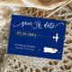 Vous avez choisi un endroit spécial pour votre mariage. Maintenant, il est temps de le célébrer avec ce gardien, enregistrez la carte postale de date, avec une carte de silhouette et un minuscule avion vers votre destination. Pour déplacer le coeur à la place de votre mariage, cliquez sur personnaliser, puis "customiser plus loin".