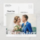 Un design de carte de remerciements photo moderne avec texte modifiable et lettrage blanc. N'hésitez pas à personnaliser la photo et le texte de la mariée et du marié.