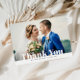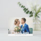 Un design de carte de remerciements photo moderne avec texte modifiable et lettrage blanc. N'hésitez pas à personnaliser la photo et le texte de la mariée et du marié.