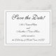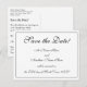 Cette conception de carte postale nostalgique et traditionnelle, sauvegardée à la date, comporte le message "Enregistrer la date !" sur le devant, ainsi que les noms customisés, une date et les détails de l'événement. Des cartes postales comme celle-ci pourraient être utilisées pour donner un aperçu aux invités potentiels d'une célébration mariage imminente ou d'un autre événement.