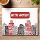 Motif de style Dessin avec des bâtiments rétro rouges et noirs pour un nouveau faire-part d'adresse très exclusif. ♥ Collection correspondante pour la COORDINATION DES ARTICLES. ♥ Oeuvre originale de PUPSIKU STUDIO. Produit 100% exclusif.
