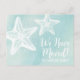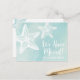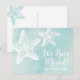 Une carte de faire-part émouvante. Faites savoir à vos amis et à votre famille que "nous avons déménagé" et changez d'adresse. Belle et simple imprimé moderne sur la plage. Un arrière - plan d'aquarelle bleu turquoise aux étoiles de mer blanches, directement de l'océan ! Vous pouvez bien sûr changer toutes les couleurs de texte et de police, et vous pouvez même changer la couleur de l'étoile de mer! Carte de Faire-part de déplacement Watercolor Beach