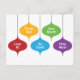 Carte postale Merci pour les cadeaux de Noël avec des ornements de forme moderne rétro du milieu du siècle aux couleurs vives, remplis de courtes phrases de remerciement amusantes.