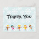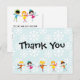 Patinage sur glace pour enfants et flocons de neige blancs sur le bleu avec le texte qui lit le Merci à l'avant et a un espace pour customiser avec un message personnel à l'arrière, correspond à nos invitations de fête d'anniversaire de patinage sur glace!