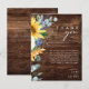 Cette carte de remerciement de réception en bois de tournesol de campagne est parfaite pour votre mariage champêtre simple et classique dans votre arrière-cour en été. Le design présente un bouquet de tournesols orange rustiques et jaunes dorés aquarelles vintage, de verdure de eucalyptus vert sauge moderne élégant, et une rose ivoire blanche. Le design est idéal pour un mariage décontracté en plein air avec un feuillage automnal minimaliste. N'hésitez pas à nous contacter si vous avez des questions concernant le design du produit ; à votre santé !