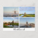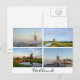Carte postale montrant de multiples paysages avec moulins à vent en Hollande en été et en hiver.