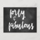 NewParkLane - Carte postale moderne noir et blanc, avec citation amusante 'Quarante & Fabuleux' dans une typographie script tendance, sur fond de tableau noir.