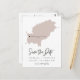 Cette carte postale de sauvegarde de date sur le thème du voyage présente une carte d'Ibiza rose et un dos de carte postale. Modifiez facilement les couleurs et déplacez le cœur pour mettre en évidence votre destination. Modifiez *la plupart* du texte pour l'adapter à vos besoins et ajoutez facilement un message spécial au verso de l'invitation.