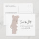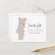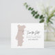 Cette carte postale de sauvegarde de date de voyage présente une carte du Portugal rose et un dos de carte postale. Changez facilement les couleurs et déplacez le cœur pour mettre en valeur votre destination. Modifiez *la plupart* du texte pour l'adapter à vos besoins et ajoutez facilement un message spécial au verso de l'invitation.