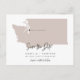 Ce thème de voyage, à l'exception de la date carte postale, présente une carte Washington floue et un support de carte postale. Changez facilement les couleurs et déplacez le coeur pour mettre en valeur votre destination. Modifiez le libellé *most* pour répondre à vos besoins et ajoutez facilement un message spécial à l'arrière de l'invitation.