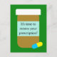 Cette carte postale est prête à customiser avec votre propre message sur le devant et le dos. Il présente une illustration d'une bouteille de médicaments d'ordonnance avec une pilule à côté et une zone étiquette qui peut être personnalisée avec votre propre message. Avec son illustration simple et audacieuse, il est parfait pour les pharmacies et les cabinets de médecins et fait une grande carte postale de renouvellement de prescription.
