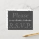 Ce design respectable et élégant de carte postale RSVP comporte le message "Please R.S.V.P." sur le devant, ainsi qu'une description customisée de l'occasion. Il comporte également un formulaire RSVP personnalisé au verso, ainsi qu'une adresse personnalisée à laquelle les cartes RSVP remplies seraient envoyées par la poste. Les cartes RSVP comme celle-ci peuvent être utilisées pour savoir qui assistera à un dîner, à un baby shower, à une réception de mariage ou à une autre célébration.