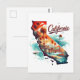 Belle carte postale retro voyage vintage montrant la carte de l'état américain Californie. Ce produit fait un grand souvenir de voyage et une idée cadeau. Achetez maintenant.