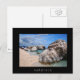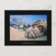 Carte postale des gros rochers sur la plage de sable de Cala Mariolu, située près de Cala Luna le golfe d'Orosei sur l'île de Sardaigne, Italie avec une frontière noire et le texte : 'Sardaigne'.