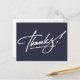Cartes postales de Merci manuscrites modernes en bleu foncé classique de la marine. Parfait pour les Mariages, Anniversaires, Noël, Douches ou toute autre occasion. Cartes postales "Merci" couleur bleu marine classique, si nécessaire, choisissez une autre couleur ou ajoutez votre propre texte imprimé, adresse ou nom de société dans l'onglet "Customiser".