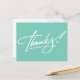 Cartes postales de Merci manuscrites modernes en Turquoise. Parfait pour les Mariages, Anniversaires, Noël, Douches ou toute autre occasion. Cartes postales "Merci" couleur turquoise, si nécessaire, choisissez une autre couleur ou ajoutez votre propre texte imprimé, adresse ou nom de société dans l'onglet "Customiser".
