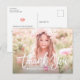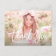 Envoyer une photo personnalisée moderne merci carte postale à la famille et aux amis pour avoir assisté à votre fête d'anniversaire. Ce design présente votre photo à l'avant avec les mots "Merci" en typographie manuscrite blanche avec un nom à personnaliser. Le dos a un message de remerciement et signature pour customiser accentué par un coeur de fausse parties scintillant rose. Celui-ci était une joie de concevoir pour vous. J'espère que vous apprécierez ! Conçu par Susan Coffey.