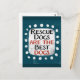 "Secourez les chiens sont les meilleurs chiens" est un design de texte mignon en turquoise avec du texte en noir et rouge, avec une forme d'accent blanc et des points blancs texturés blancs qui l'entourent.
