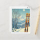 Bonjour des montagnes enneigées de Ski Apache, Nouveau-Mexique, Sierra Blanca, États-Unis! Nous espérons que vous passerez de merveilleuses vacances à ski. Cette carte postale présente un magnifique paysage montagneux bleu-gris avec des planches de ski rétro dans un motif tribal orange. Toutes les phrases de texte peuvent être customisées pour vous convenir!
