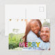 Envoyez à vos proches à travers le monde, cette carte postale facile et amusante "Be Merry" avec votre photo de vacances. Pas besoin d'enveloppes, juste l'adresse et l'envoi avec un timbre. La carte postale correspond aux articles de la collection Be Merry de notre boutique!