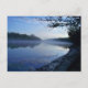 La première chose du matin sur la rivière espagnole, tout est calme et il y a une brume qui se lève de l'eau tout en bleu.