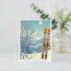 Bonjour des montagnes enneigées de Morzine, Auvergne-Rhône-Alpes, France, en Europe ! Nous espérons que vous passerez de merveilleuses vacances à ski. Cette carte postale présente un magnifique paysage montagneux bleu-gris avec des planches de ski rétro dans un motif tribal orange. Toutes les phrases de texte peuvent être customisées pour vous convenir!