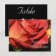 Belle photo de rose avec les noms des couples nuptiaux et la date du mariage sur le devant. Le dos est noir solide avec un grand numéro de table en blanc. Objets correspondants disponibles, y compris les cartes individuelles pour l'affectation de la table invitée et la conservation