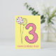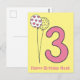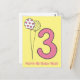 Nouvelle carte de vœux NewParkLane - Joyeux Anniversaire pour les enfants de trois ans, avec un grand chiffre 3 rose et avec un jaune mignon avec des pois blancs et des ballons blancs avec de petits cœurs roses, et un doux vœu "Joyeux Anniversaire !", sur un fond jaune vif.