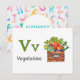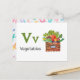 "Letter V is for Vegetables" dans notre jeu de cartes Alphabet Flash. Obtenez les 26 lettres de l'alphabet ! Une carte postale recto verso qui est idéale pour les jeux de mémoire et l'enseignement, destinée à l'éducation, les écoles, les enseignants et les écoles pour les enfants et les enfants. Tout le texte est modifiable si vous devez customiser.