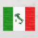 La carte de l'Italie et les noms de ses principales villes ornent le drapeau italien.