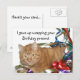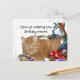 Frustré chat tabby orange enchevêtré dans des rubans carte postale d'anniversaire. Texte avant "J'ai arrêté d'emballer ton cadeau". Retourner le texte "Voici votre carte". Convient à tous les âges. Le texte peut être modifié ou supprimé avec le bouton PERSONNALISER