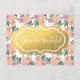 Cette carte postale à motifs floraux va sûrement rehausser votre esprit chaque fois que vous vous sentez mal ou avez eu une mauvaise journée.Vous pouvez également envoyer ceci à un ami qui a une journée difficile.Le design met en évidence rose et pêche motif de fleurs d'aquarelle. Le design principal est composé de 3 fleurs en rose et pêche, avec 2 fougères vertes.