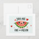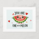 Célébrez quelqu'un de spécial avec cette carte "You Are One in a Melon" ! Doté d'une charmante tranche de pastèque avec un grand sourire et entourée de coeurs mignons, cette carte est parfaite pour exprimer votre appréciation, votre amour ou votre admiration. Idéal pour les anniversaires, je vous remercie, note, ou simplement pour faire savoir à quelqu'un qu'ils sont vraiment uniques. Ajoutez votre touche personnelle pour la rendre extra sucrée !