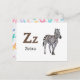 Postale Z est pour Zebra - Carte Flash Alphabet