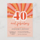 Ajoutez une ambiance tendance et d'inspiration rétro à votre événement avec ces invitations à la fête du 40e anniversaire. Design simple et facile à customiser avec tous les détails de la fête. Pêche, rose et rouge arrière - plan tourbillonne avec le texte : "40 et fabuleux! Rejoignez les célébrations pour (nom) anniversaire". Lumineux, audacieux et coloré ! Quoi de plus fabuleux ?