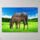 Pâturage de jument et de poulain dans les pâturages verts