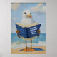 Seagull Reading Book Art Print - Funny Literary Bird Wall , Coastal Office Gift, Whimsical Animal Illustration
