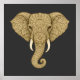 This antique-gold elephant design features intricate mandala detailing throughout, creating a dimensional look, while the bone-toned tusks and amber eyes add natural contrast against the charcoal background. This beautiful boho graphic poster art will be a great addition to your home decor.