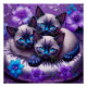Poster 3 Chatons Siamais Fleurs violettes Coussin Argent