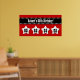 65e ou toute année Anniversaire Rouge Black Stars Bannière Personnalisée. Cette bannière moderne avec ses étoiles d'apparence 3D est une bannière d'anniversaire amusante et moderne pour votre fête d'anniversaire à venir. Personnalisez avec un nom et changez le sentiment si vous voulez. Vous pouvez également modifier l'année d'anniversaire si vous le souhaitez. Tout le texte est entièrement personnalisable, donc aussi adapté pour un 61 62 63 64 65 66 67 68 et 69 ans anniversaire, ou toute autre année dont vous avez besoin.
