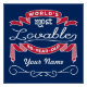 Célébrez l'anniversaire marquant de votre personne âgée préférée avec ce cadeau amusant qui leur rappelle à quel point ils sont aimables. Lettres blanches sur les bannières rouges du cardinal sur arrière - plan bleu marine, avec espace de nom personnalisé orné de repères bouclés. Customisez avec les noms, initiales ou autre texte. La couleur de l'arrière - plan est changeable : il suffit de cliquer sur le bouton "Personnaliser" bleu et de choisir une couleur dans le panneau "Sélectionner une couleur Arrière - plan". Couleurs moyennes à sombres recommandées. Cette série est en incréments de 5 ans (95, 90, 85, 80...). Si vous souhaitez un autre âge (par exemple 97, 63, 74, etc) et/ou un texte différent à la place de "Lovable" (par exemple : Extraordinaire, Captivant, Charme, Fascinant, Huggable, Kissable etc), envoyez-moi un message. Je ferai des personnalisations pour vous gratuitement.