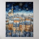 Poster à thème bleu du village couvert de neige