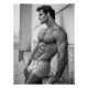 Behold this captivating black and white art print, showcasing a powerfully built physique set against a textured wall, evoking a sense of classic strength and contemporary style. The subject's gaze is directed upwards and outwards, suggesting a moment of aspiration or confident outlook.