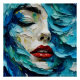 Keywords: abstract impasto painting, tactile texture art, female face artwork, ocean waves background, blue and green hues, red lips painting, oil on canvas, contemporary abstract art, textured surface painting, modern expressionism.