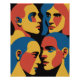 Abstract Faces Grid Art Print, Vibrant Red Blue Yellow Geometric Portrait, Modern Graphic Poster, Bold Contrast Wall Decor.